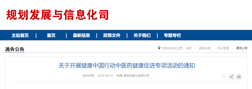 近日,健康中国行动推进办、国家卫生健康委办公厅、国家中医药局办公室联合印发《健康中国行动中医药健康促进专项活动实施方案》(以下简称《实施方案》),明确活动重点围绕全生命周期维护、重点人群健康管理、重大疾病防治,普及中医药健康知识,实施中西医综合防控,在健康中国行动中进一步发挥中医药作用。活动时间3年。