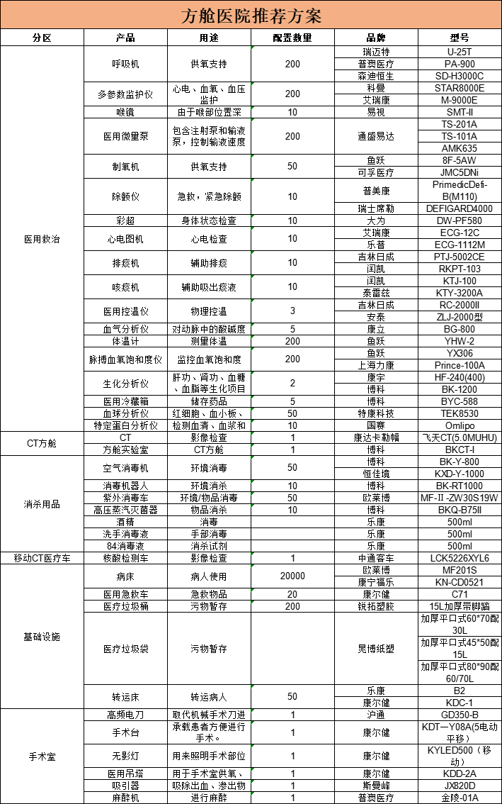 3、方舱医院装备指南(原文:国家发文,方舱医院需配备这些设备!(附清单))