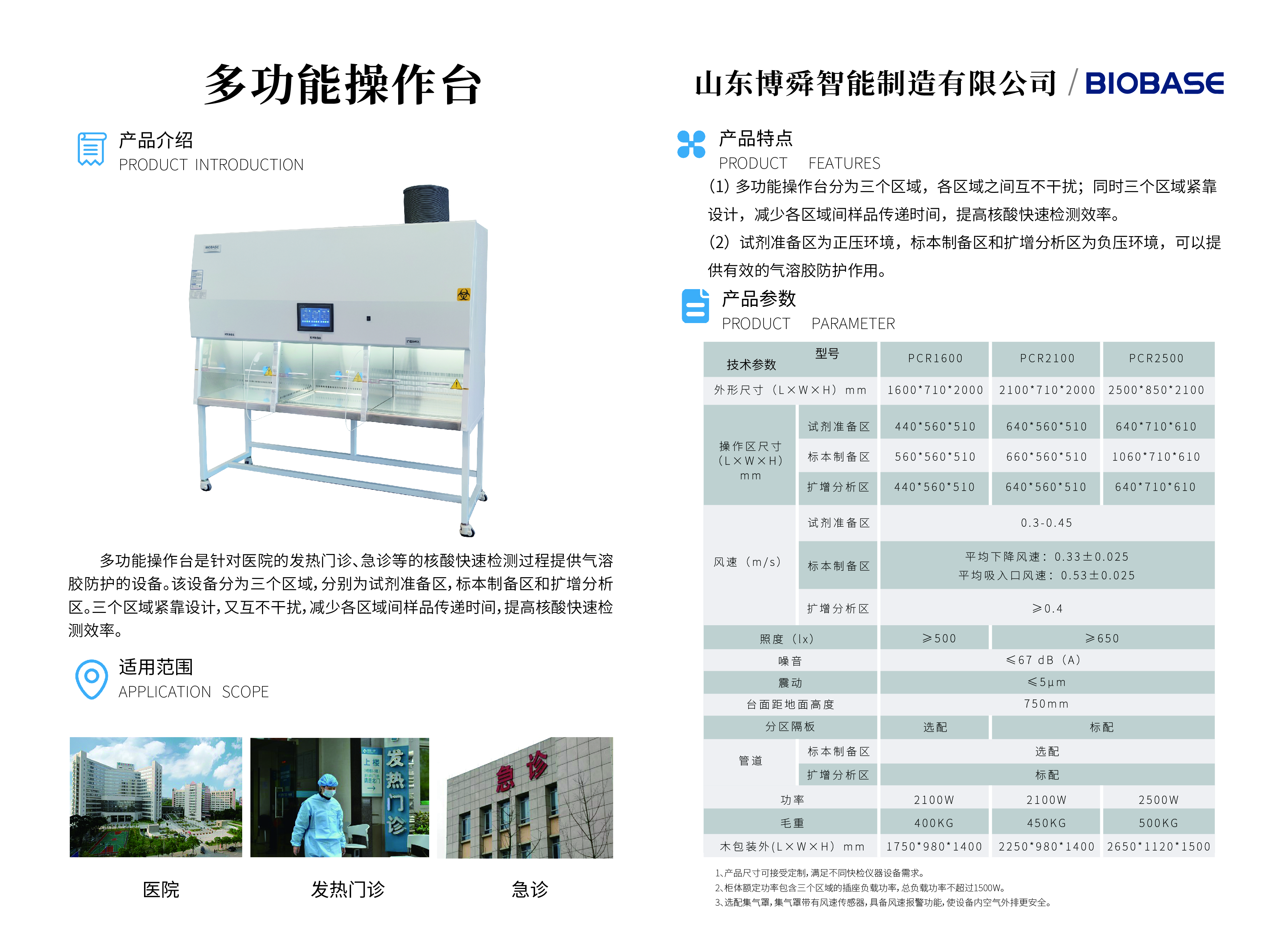 1、多功能操作台分为三个区域,各区域之间互不干扰;同时三个区域紧靠设计,减少各区域间样品传递时间,提高核酸快速检测效率。