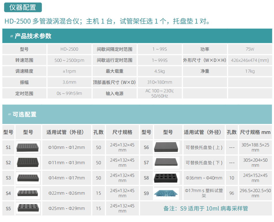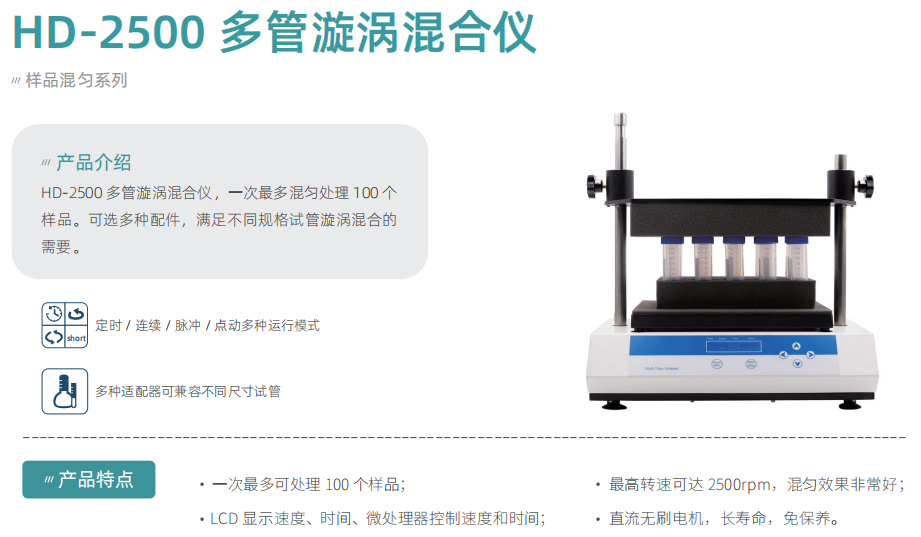LCD液晶显示,较大混匀试管数100根,标配两种模块