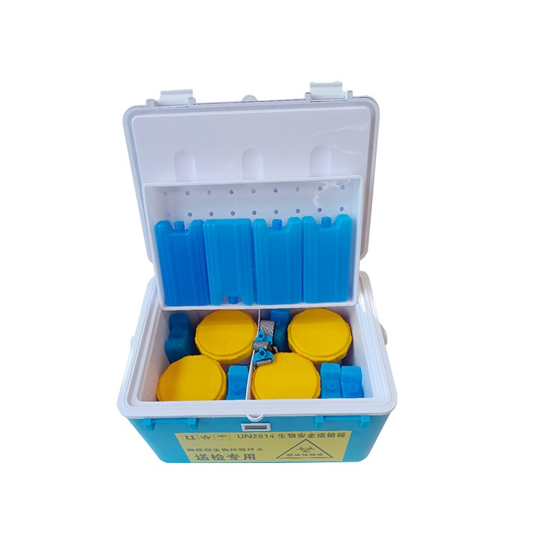 保温箱1只 数显温度计1个 95KPa生物安全运输罐5只(可选配6罐) 海绵试剂管托5只 吸附棉5片 蓄晶冰盒11个 |