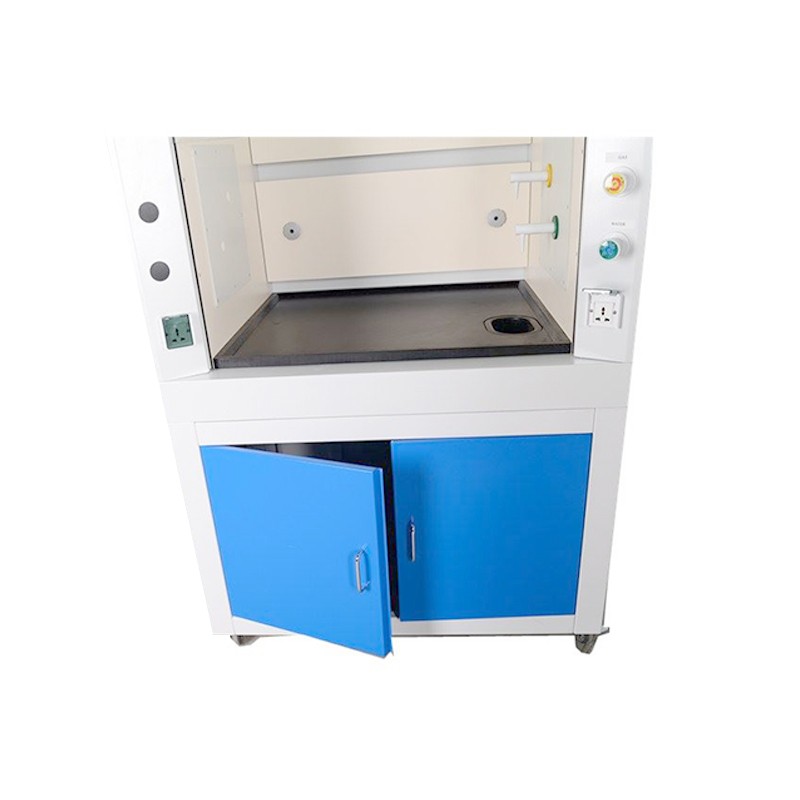 8、通风柜配置底柜,底柜采用1.0mm冷轧钢板经防锈处理,静电喷涂,具有较好的光洁度与耐腐蚀性;底柜860*480*730mm(L×D×H)的超大空间可以放置实验室用品;底柜与上柜体配套使通风柜更加美观实用。