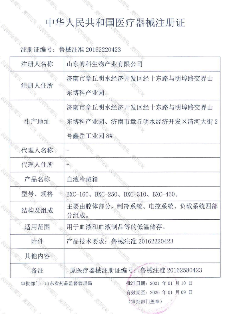 批准文号:鲁械注准20162220423