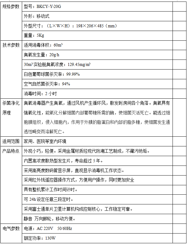 博科BKCY-Y-20G臭氧消毒器_床单位臭氧消毒器